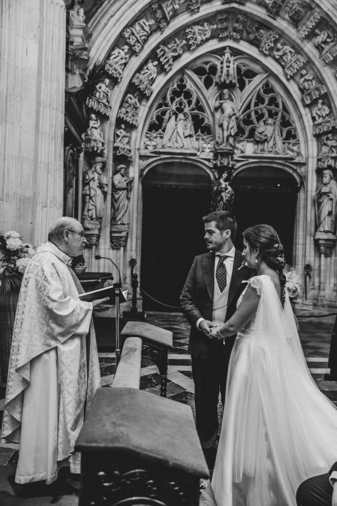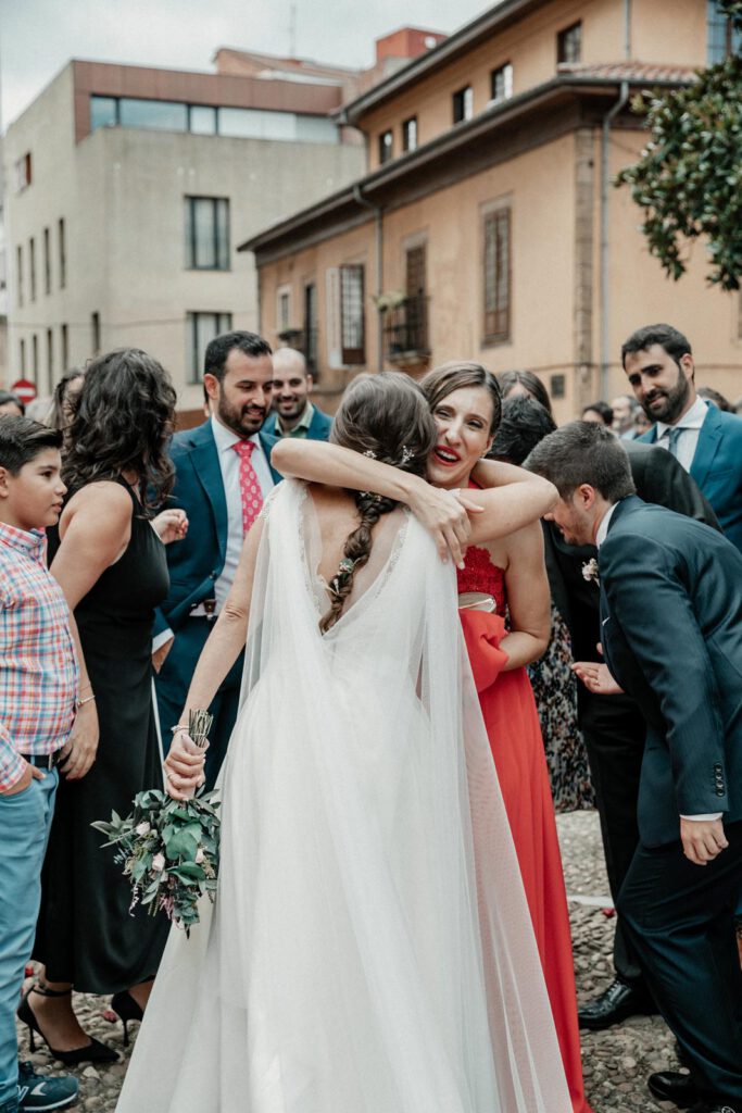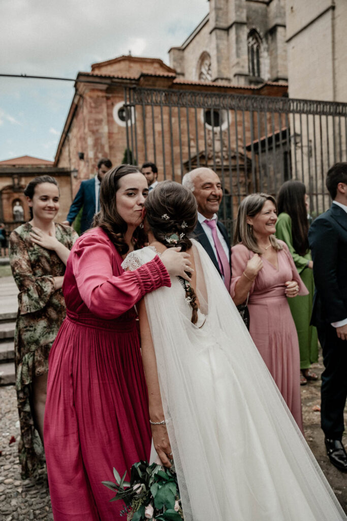 Había nervios, sí. De esos que se sienten en el aire. Pero también muchísimo cariño alrededor, familia y amigos volcados desde el primer minuto. La ceremonia fue religiosa, en la preciosa capilla del Rey Casto de Oviedo, con llegada en coche clásico y una Elena que dejó a todos con la boca abierta.